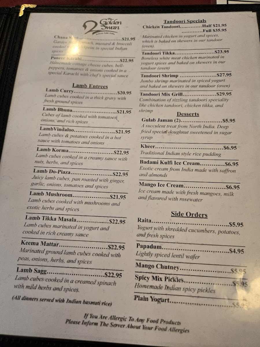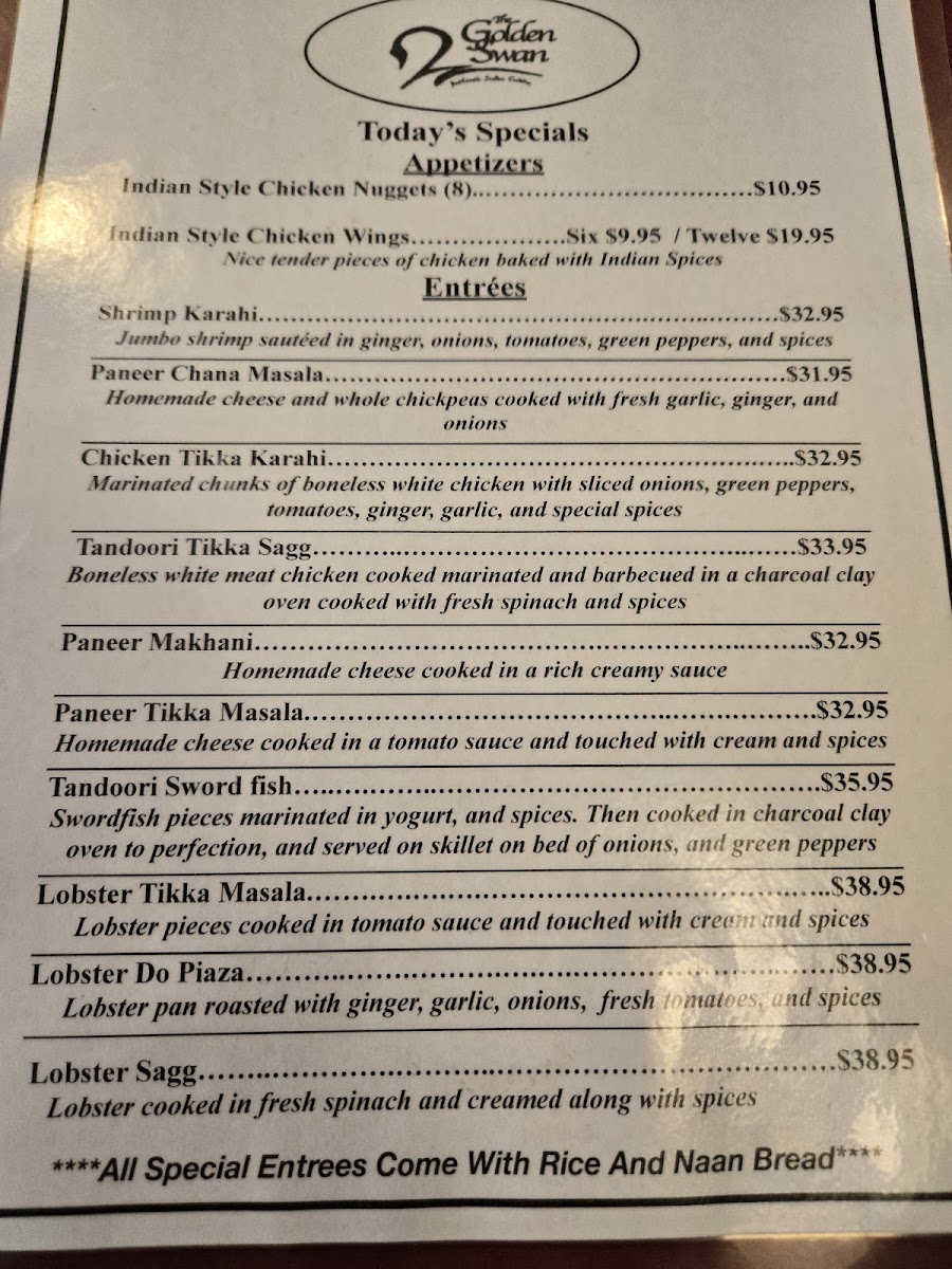 The menu at Golden Swan Indian Cuisine offers a thoughtfully curated selection that balances rich, comforting flavors with the fresh vibrancy of traditional Indian cooking. Whether you’re stopping by for a casual lunch, a relaxed dinner, or a weekend gathering, the dishes invite you to experience familiar favorites alongside intriguing specialties.